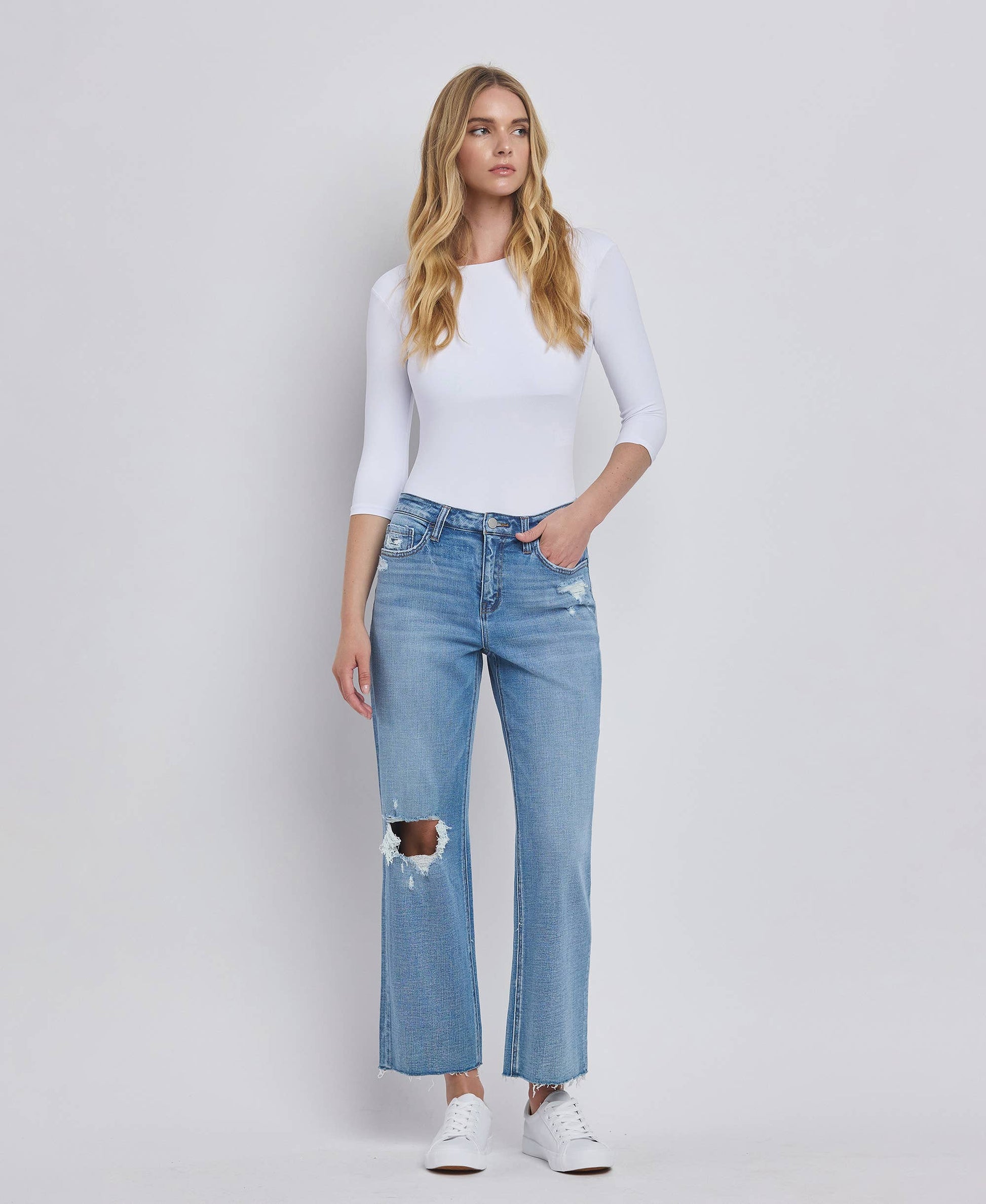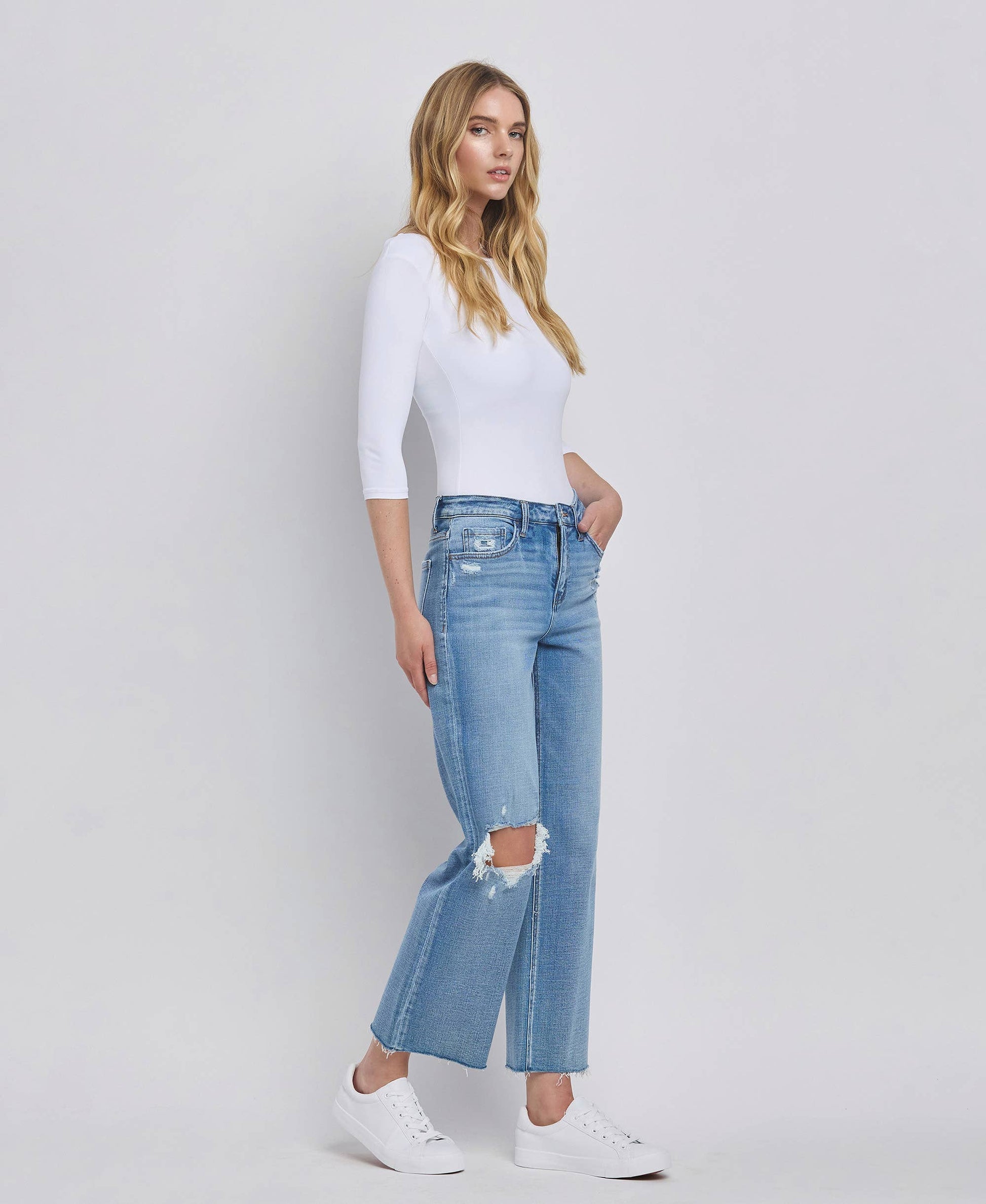Lola High Rise Crop Slim Wide Leg Jeans ~ Light Denim